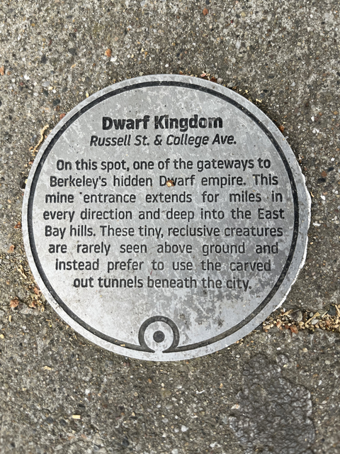 On this spot, one of the gateways to Berkeley's hidden Dwarf empire. This mine entrance extends for miles in every direction and deep into the east Bay hills. These tiny, reclusive creatures are rarely seen above ground and instead prefer to use the carved out tunnels beneath the city.